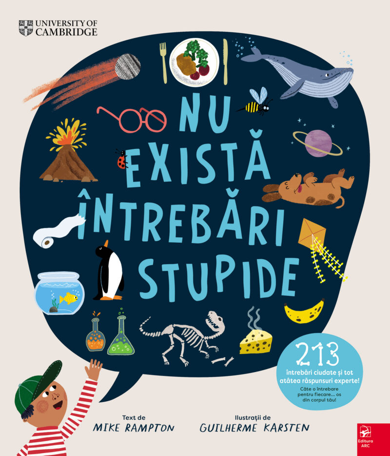 Te-ai întrebat vreodată… dacă dinozaurii strănutau? Ce se va întâmpla dacă vom cădea într-un vulcan? De ce apa minerală devine plată? Câte oase are corpul nostru? Cine a inventat ciocolata? Cum merg la toaletă astronauții? Cum se deosebesc pinguinii între ei? La ce ne folosesc sprâncenele? Care e cel mai mare număr din lume? De ce câinii se miros unii pe alții?